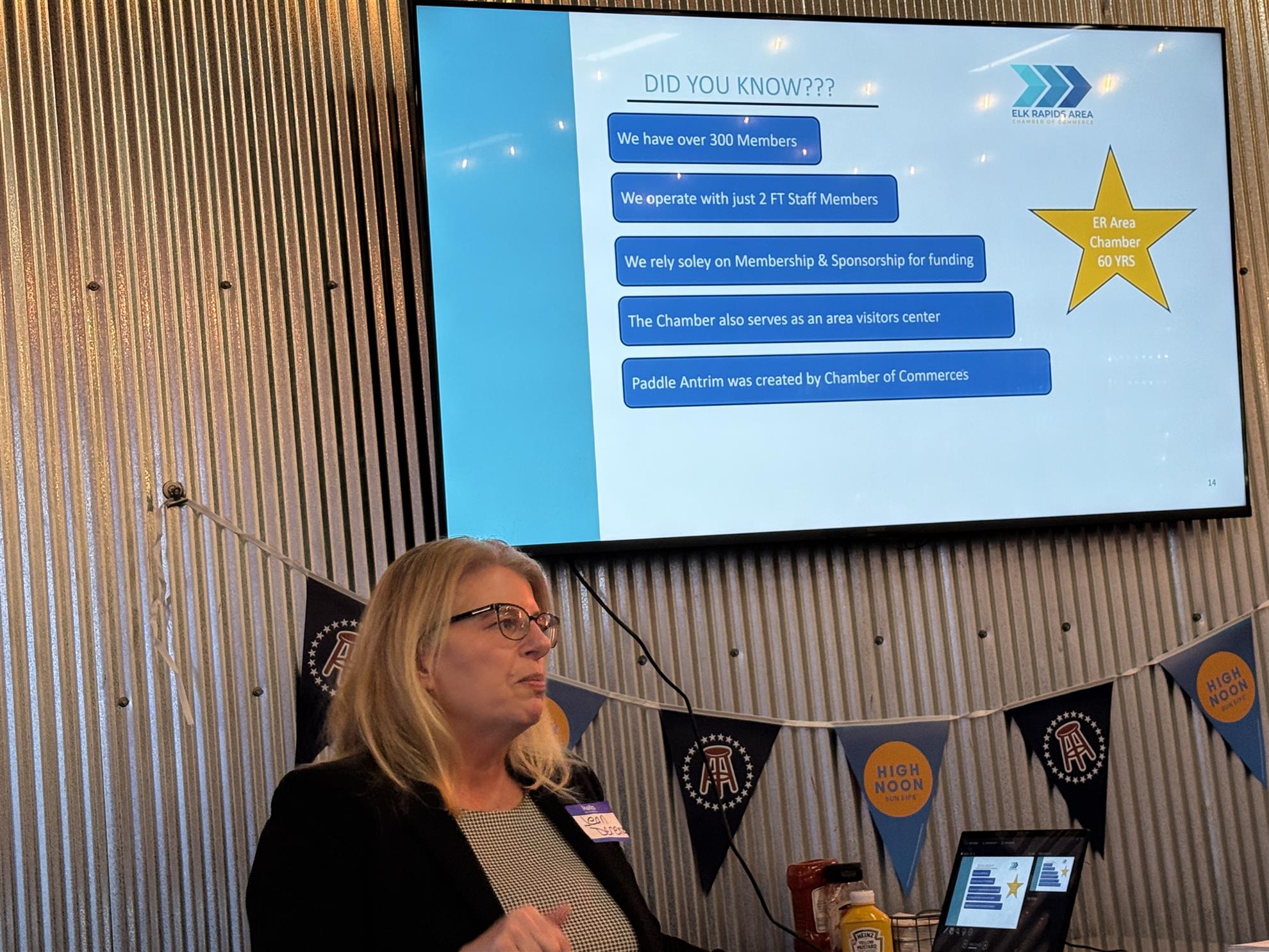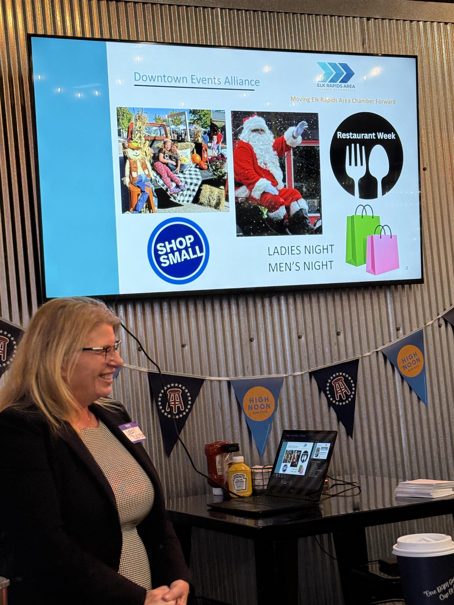 At the meeting on October 21, we were presented an update from the Elk Rapids Area Chamber of Commerce. This organization represents Acme, Alden, Atwood, Bellaire, Central Lake, Eastport, Ellsworth, Elk Rapids, Kewadin, Rapid City, Torch Lake and Williamsburg.